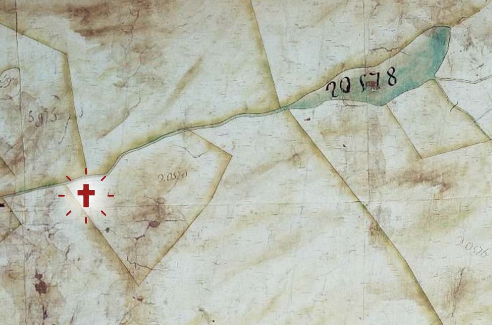 Emplacement de la découverte du corps du pèlerin. -Extrait de la Mappe Sarde (XVIIe siècle)