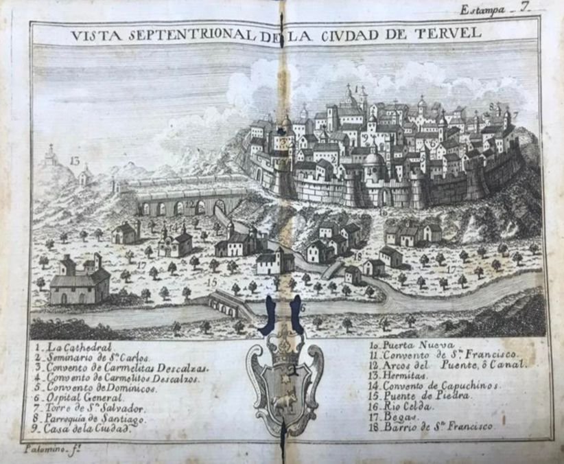 Gravure ancienne de la ville de Teruel vue du nord – XVIIIe siècle