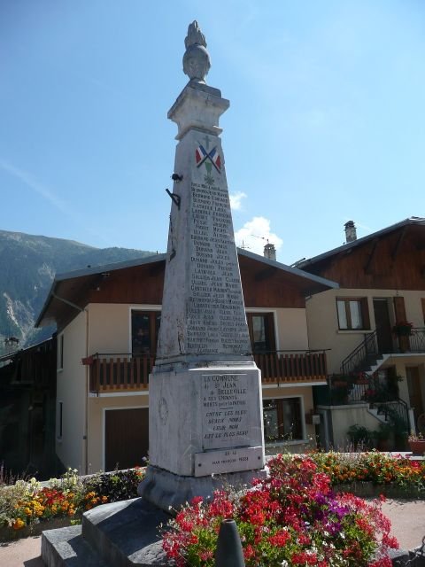 Érigé sur la place, sous l’église Saint-Jean-Baptiste et à côté de la mairie, le monument aux morts de Saint-Jean-de-Belleville honore 37 soldats tombés durant la Grande Guerre et un Saint-Jeannais mort en 1939.